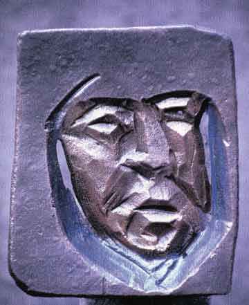 This bas relief wall hanging was sculpted at the same time I was working on the bust of Dr. Martin Luther King, Jr. That's why this ominous face is called "The Assassin."