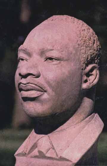 This 3D sculpture of Dr. Martin Luther King Jr. was created to honor the great American civil rights leader. I collected newspaper and magazine photos and used those as a reference for the modeling. They were typically poses of him taken during speeches and public appearances spanning many years of his life. Because the lighting and poses were so varied, it was a challenge to capture an accurate likeness. Each version depicts a different time period in his life. The Older Man version, shown here, is the clay model before it was sent to the foundry. The piece is currently at the foundry and has been cast in bronze. Once it is mounted on a black granite base it will be available for sale. The bronze would be an ideal way for a community to commemorate this great American leader. Bronze is an appropriate metal for display indoors or outdoors. The piece is heroic size (1-1/4 life size). Please read the Terms of Sale for additional information. $8,500.00 - Bronze ***** Another version in Hydrostone, with a bronze finish, is also available. It is appropriate for indoor use only. This version would be ideal for display in churches or schools, or any other indoor setting. $450.00 - Hydrostone |